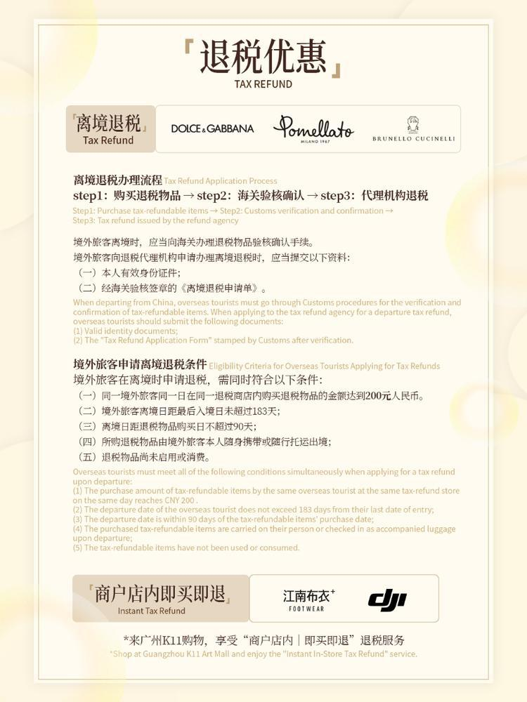 广州K11也有多家品牌支持店内即时退税,为海外客商提供购物便利。